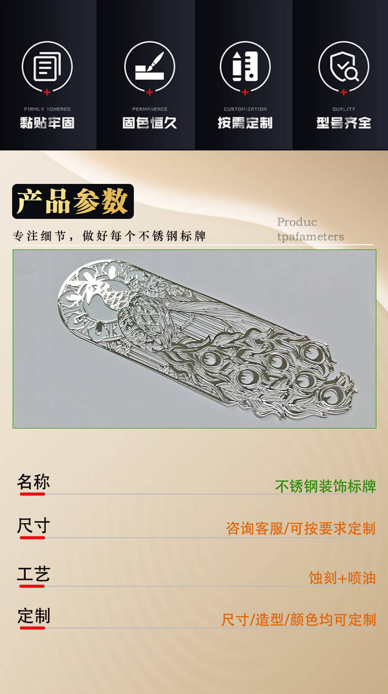 吉祥孔雀鳳凰鏤空不銹鋼裝飾吊牌