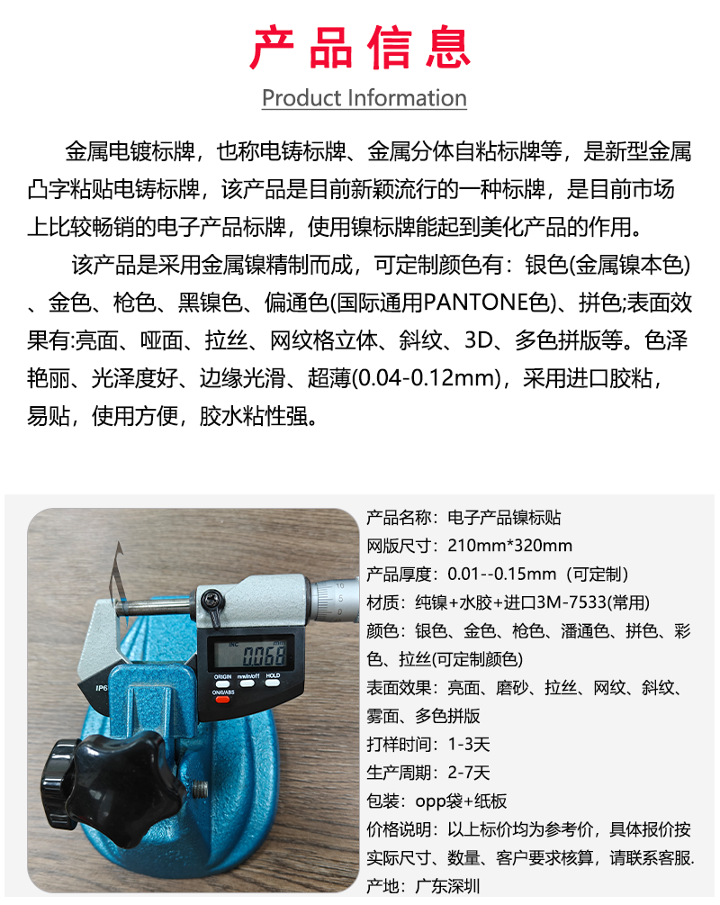 長度:50mm 寬度:10mm 厚度:0.06mm 工藝: 電鑄 表面效果:磨砂