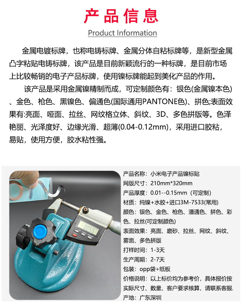 小米電鑄鎳標(biāo)牌