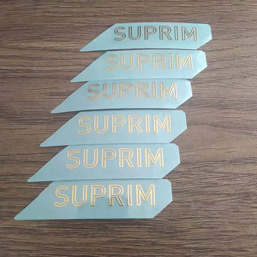 金屬標(biāo)貼的組成有三層,分表層保護(hù)膜,里層成品,還有后面的背膠。使用簡單,只需輕輕的用手把標(biāo)貼從不干膠紙上撕下來,然后粘貼到產(chǎn)品上面就可以了。