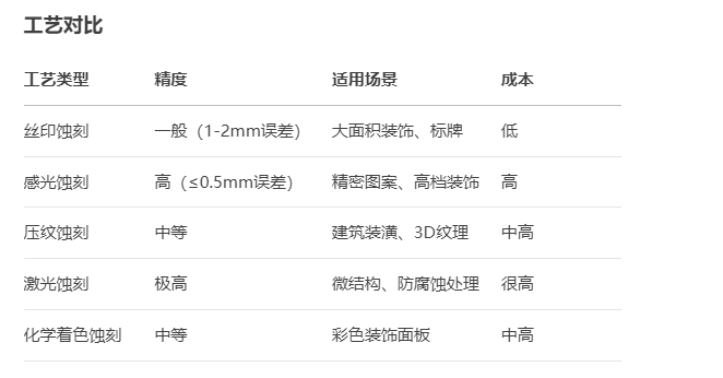 工藝過程:通過絲網(wǎng)印刷將耐酸油墨印在不銹鋼表面,形成保護層,然后用化學蝕刻液(如氯化亞鐵)腐蝕未保護區(qū)域,形成圖案。
