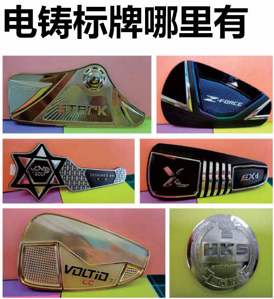 電鑄標(biāo)牌是采用電化學(xué)的方法,在制有掩膜圖文的導(dǎo)體胎膜上快速 沉積金屬,構(gòu)成金屬的圖文薄片,將金屬薄片從胎膜上分離后,覆以不 干膠作為黏結(jié)層,即制成電鑄標(biāo)牌。電鑄標(biāo)配廣泛應(yīng)用于適用于各種家用電器,電腦顯示器,鼠標(biāo),音響,家具,防盜門(mén),玻璃制品,手機(jī)塑料殼,手機(jī)PU套,不銹鋼杯,皮帶口,手機(jī),摩托車,禮品盒,鐵件,鋼琴,吉他,酒盒等工藝品上。